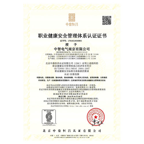 職業健康安全管理體系認證證書