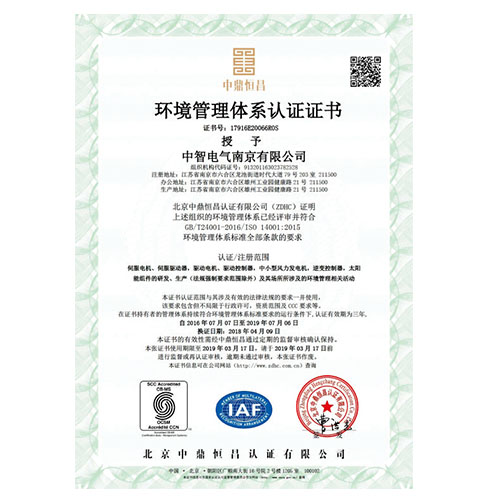環境管理體系認證證書